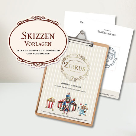 Damit du direkt loslegen kannst, bekommst du zu allen 24 Motiven die passende Skizzenvorlagen als PDF zum Download.