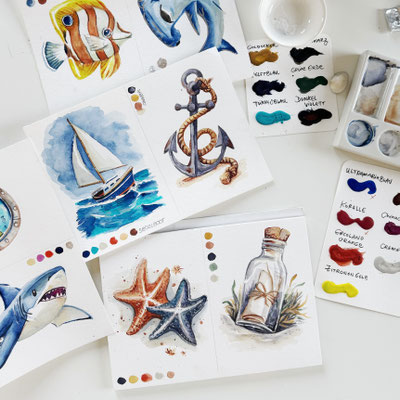 Melde dich jetzt an, entdecke mit mir die Leidenschaft zum Thema Meer und Aquarellfarbe