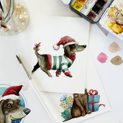 Online-Workshop: Weihnachtliche Dackel in Aquarell malen 🎄